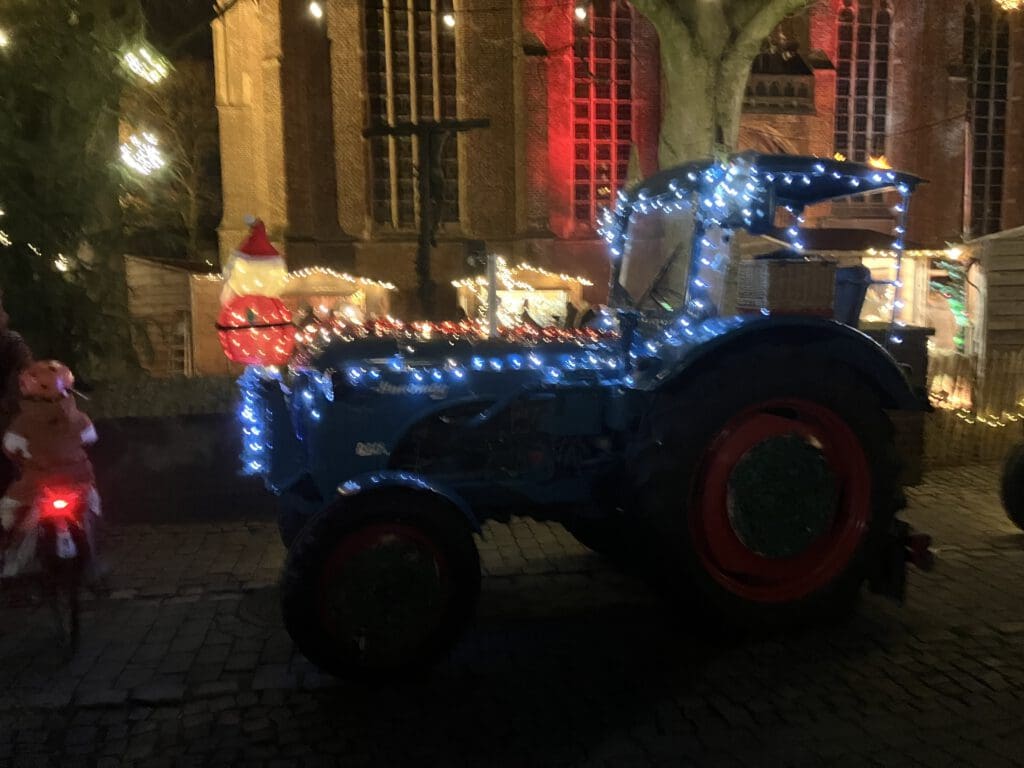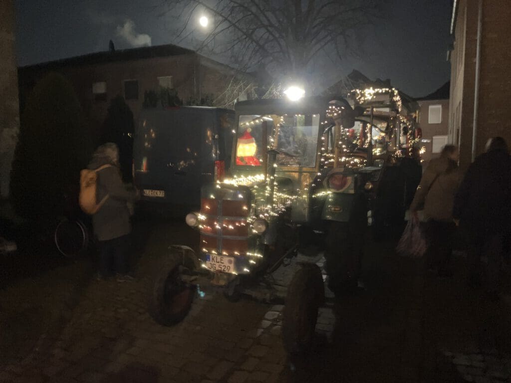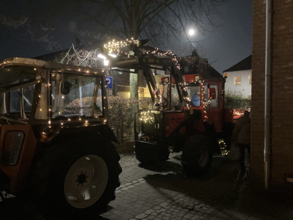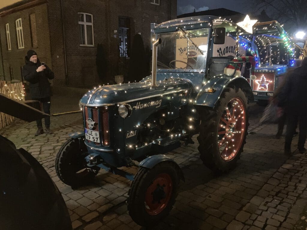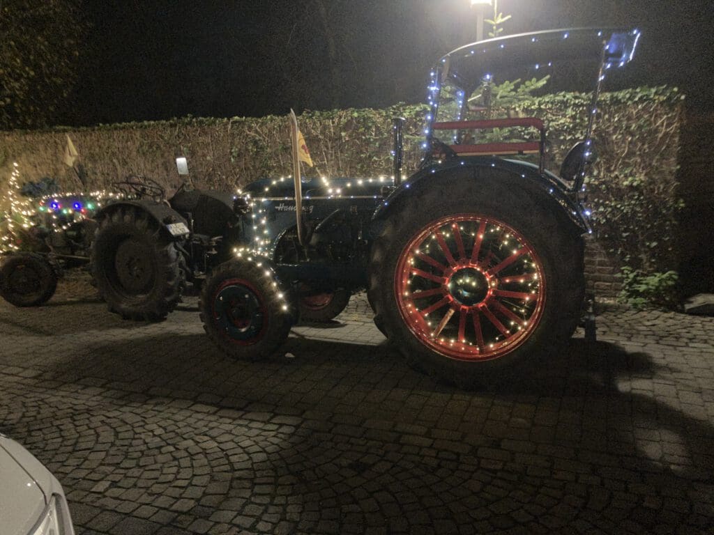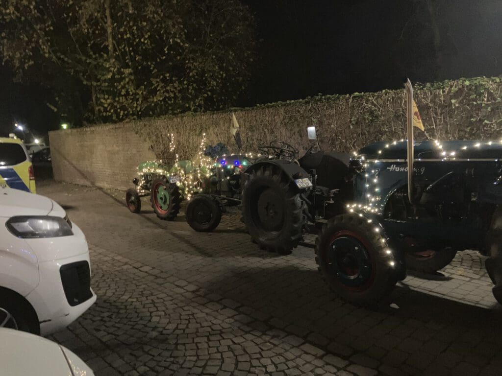 Lichterfahrt zum Nikolausmarkt mit 17 Treckern und dem Nikolaus